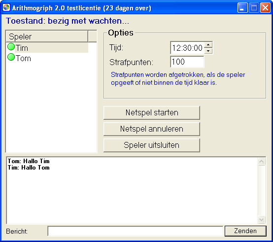 kunt u een spel starten (knop Netspel starten).